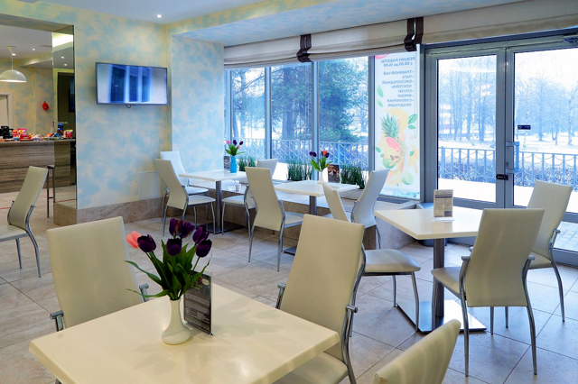 В ресторане санатория организовано трехразовое питание, система «шведский стол».